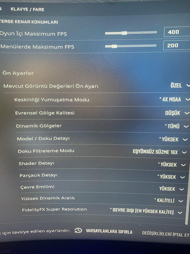 Görüntü ayarının önceki ve sonraki halini ekledim. Değiştirmemi önerdiğiniz bir ayar var mı? Ölüm maçında şu an 120fpslerde geziyor ama emin olamadım iyi mi kötü mü sunucu kalabalık oluyor çünkü. 4x msaa olan öncesi.