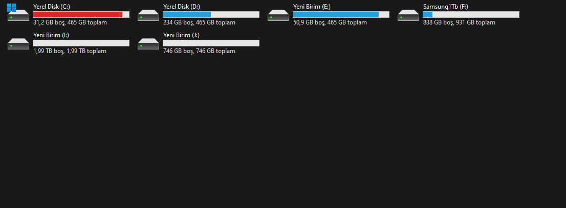 Peki CMD'den baktın mı disklere? Daha olmadı başka sistemde tak ve tek disk olarak formatla.