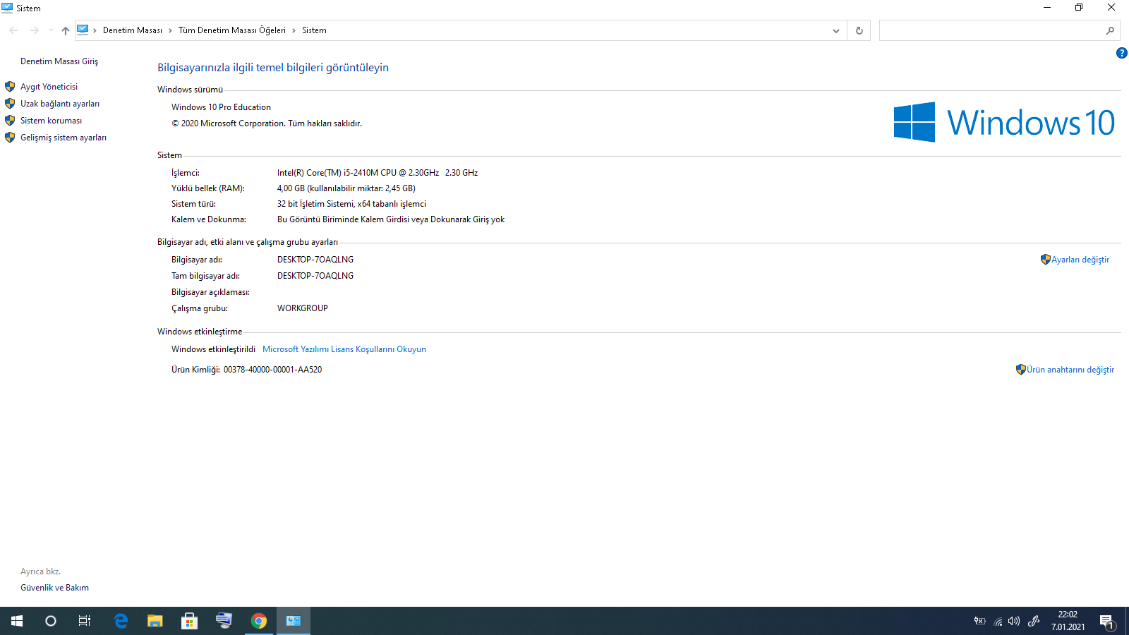 Çok normal Win 10 ve diğer sistem ayarları kullanıyor.