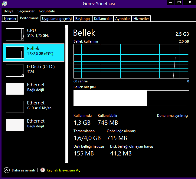 4 GB RAM sistemde 2.5 GB RAM yazıyor