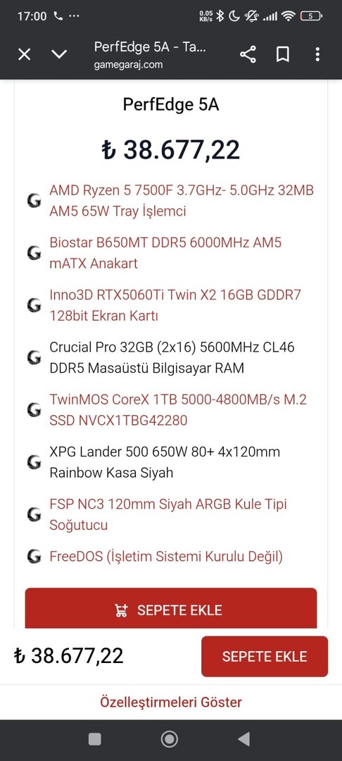 Arkadaşım laptopu satıp masaüstü sistem alacak. Excalibur G870 i5 13420H RTX 4060'lı 32GB/1TB laptopu 30kya satıp üstüne maximum 10k koyarak kasa almak istiyor. Monitör klavye mouse falan her şeyi var sadece kasa alacak. Biz şunu bulduk ve biraz özelleştirip ucuzlatmaya çalıştık: