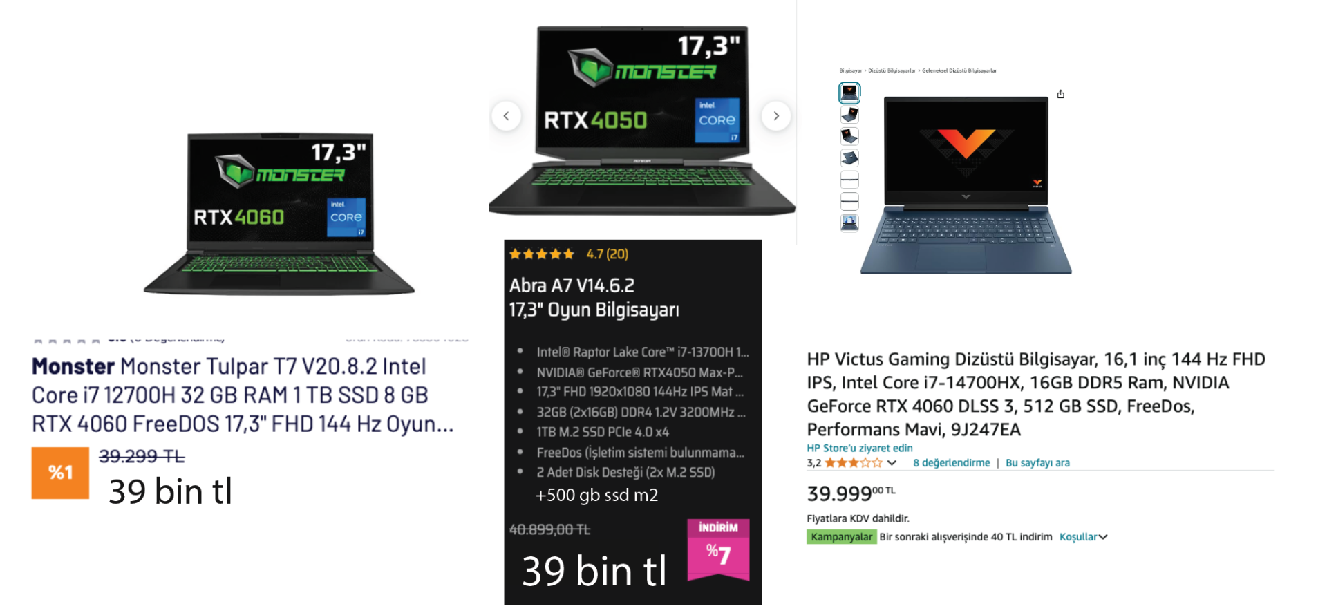 Merhaba, biraz oyun oynayıp biraz da grafik tasarım yapacağım. Evde demirbaş gibi bir PC olsun diyerekten laptop arayışına geçtim. Ekteki laptoplar ilgimi çekti. Öneriniz ne olur? Teşekkürler.