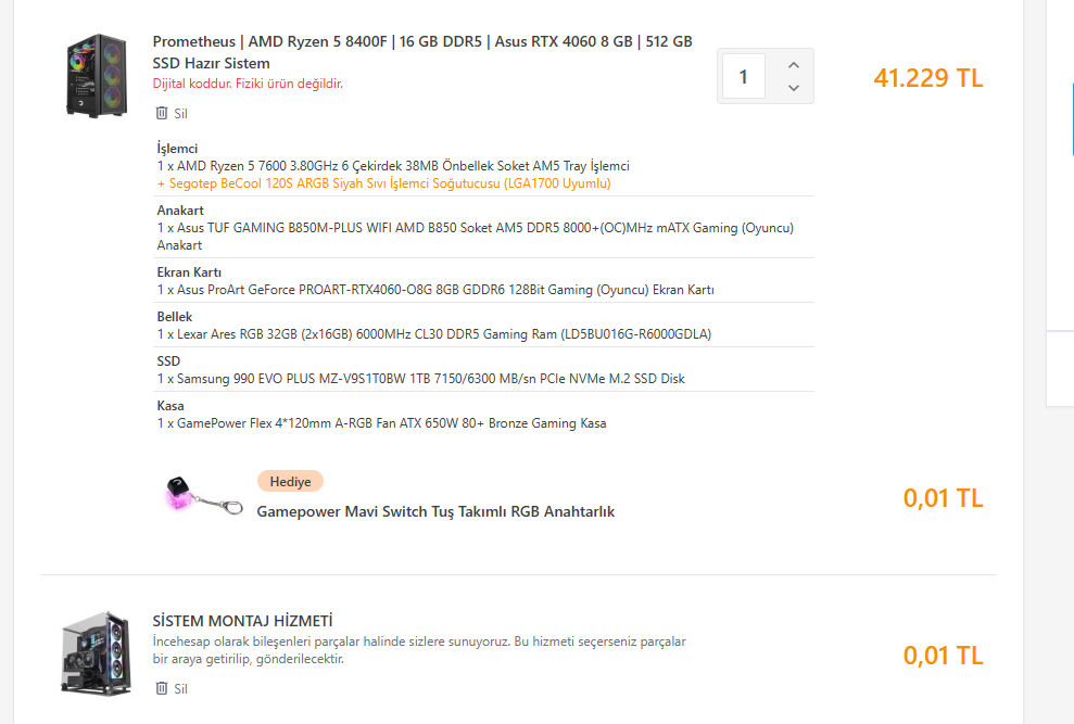 Ben de şöyle bir sistem çıkardım: İleriye dönük olması açısından anakart, işlemci ve RAM kısmında fulleyebileceğim kadar full koymaya çalıştım. Çünkü şu şekilde düşünüyorum: İleride gidip istersem işlemciyi, istersem ekran kartını değiştirebilirim. Diğer türlü giriş seviye bir anakart alacağım için bu kadar detaylı şeyleri yapamayacağım belki de.