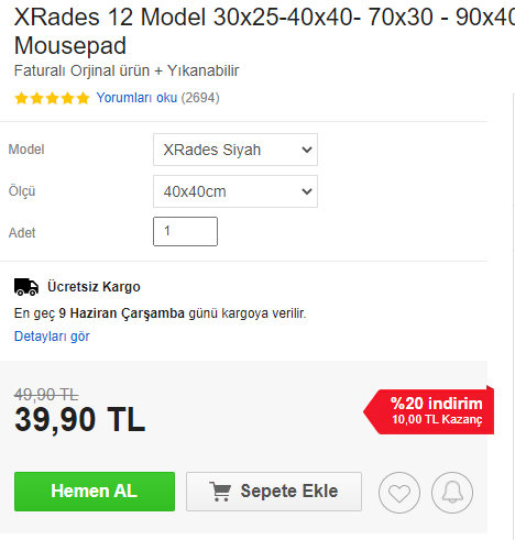 Merhabalar arkadaşlar, Sharkoon Light 2-s almayı düşünüyorum yakın zamanda, bu yüzden de defterden kurtulup artık gerçek bir mouse pad'e geçmek istiyorum. Bana 30-40 TL'yi geçmeyecek şekilde kaliteli bir mouse pad önerir misiniz? Büyüklüğü, rengi, şekli vs. önemli değil fiyatına göre kaliteli olsun yeter. Bir de speed olursa iyi olur.