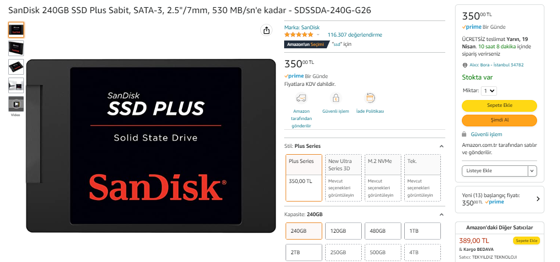 SSD almak istiyorum. 400 liraya kadar bütçem var. Bu ikisi arasında kaldım. Hangisini almalıyım veya başka bir SSD öneriniz var mı?