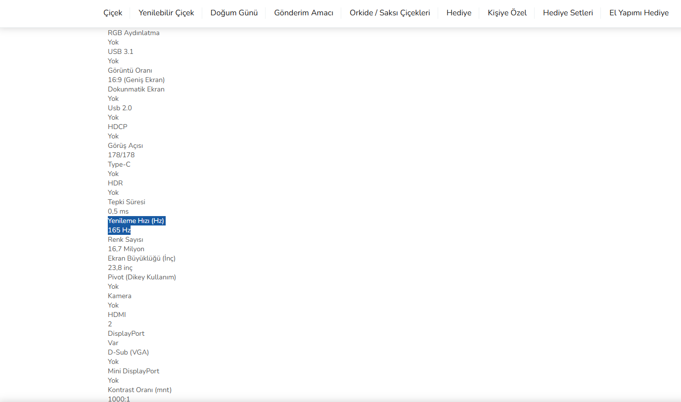 Hocam gönderdiğiniz Çiçeksepeti linkinde monitör Hz değeri 180 yazıp aşağı bölüme 165 Hz yazılmış dikkat edin. Onun dışında Samsung olanı alabilirsiniz.