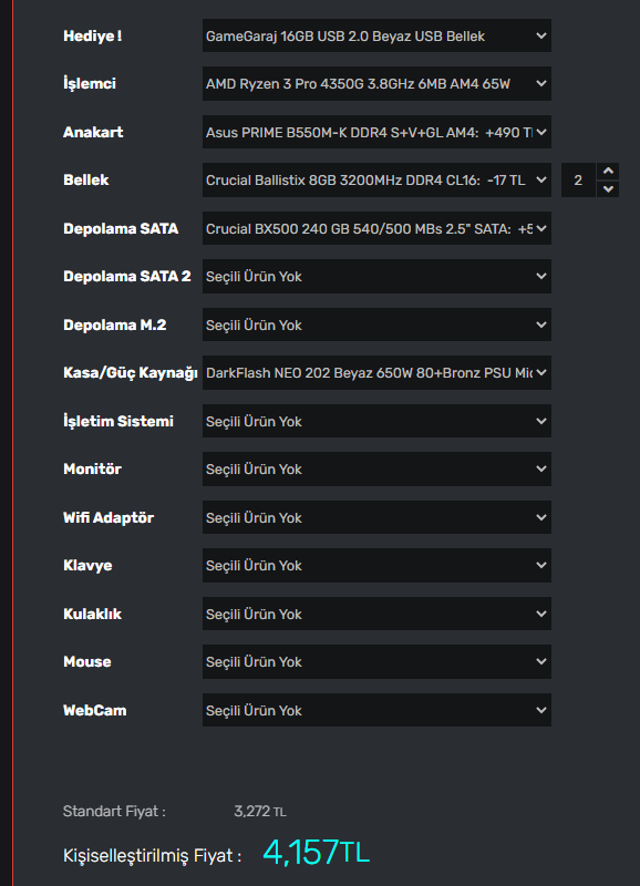 Sinerji Bilgisayar PC Toplama Sihirbazı ile oluşturuldu. Siz de bu konfigürasyonu özelleştirip yeniden paylaşabilirsiniz.