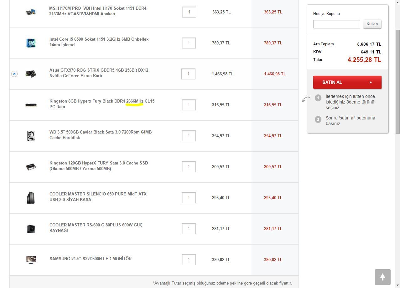 Bu sistem çok iyi , garantili sistem yapmışsın burda monitör değişebilir ekran kartı değişebilir sapphire 390x seçilebilir fiyat avantajı çok var asus mu daha iyidir falan o senin tercihin gtx 970 var ama ondan performanslı fiyat avantajlı sapphire 390x var soğutma tarafını falan araştırıp 390x e bi bakabilirsin sapphire modeli.Yani o sana kalmış ama kötü değil bu sistem seçtiğin o anakart iyi H serisi olup fiyatta Z serisini sollamamış hani aldığında pişman olmazsın usb 3.1 ile usb type C yok anakartta şimdi onlar sana ihtiyaç değilse yine olmasa olur ram desen performanstan ödün vermez xmp ile zaten 2666 mhz yaparsın hiç ayar yapmadan profile 1 seçersin biosdan açılmaz belki profile 2 seçersin bu kadar basit ki çoğunlukla açılır bide DDR4 den bahsediyoz 1.3 voltaj ile 2666 mhz lere çıkıyor.Yani ramde xmp varsa 3000 mhz olsa bile sen 2133 mhz destekli anakartta onu yaparsın stabil olur mu olmaz mı o tartışılır belki zorlaması çok zor 1.3 voltaj veriyosun 2666 yani şimdi riski o kadar yok çok az.Seçtiğin anakartı tekrar söylüyom 600 tl olup OC desteksiz seçiyolar sinir oluyom gerçekten bu seçtiğin yerinde olmuş zaten K serisi almamışsın stok fan kullanıcan gerek yok ama 600 tl veriyosanda geleceğe dönük aynı fiyata Z serisinide alabilirsin yani öyle sistemler görüyorum aynı fiyata Z serisi vatanın sitesinde direk var.Değişebilecek o kadar çok şey yok 500 gb yetiyorsa HDD de black serisi almışsın o da iyi blue alıp 1TB da yaparsın tercih bunlar hep aynı fiyata bu da var ama ihtiyacının fazlasını azını alma yerinde al.SSD samsung 850 evo var ben aldım yani SSD de o kadar sıkıntı olmaz zatende samsung kendine güvenip 5 yıl garanti veriyor vatan 2 sene klasik veriyor diye bişey yok direk samsungun o zarfında 5 senelik garanti var yani vatan computerla uğraşmıyosun samsunga iletiyorsun sorun olursa adamlar SSD sine güveniyor yani 5 sene ömür 2 sene verenler gereksiz zaten SSD 2 sene rahat götürür.30 tl daha verebiliyorsan samsung 850 evo al 5 sene garanti veriyor sana.