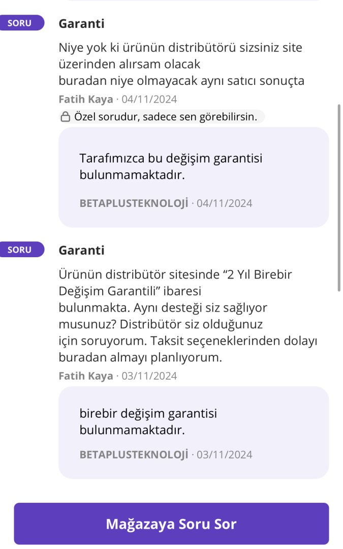 Merhaba, 4070 Ti Super alma aşamasındayım. N11 üzerinden 9 taksit ile alacağım. Galax almayı düşünüyordum fakat distribütör Gaming.Gen.TR N11 sitesinde betaplus ismiyle satış yaparken kendi sitesinde belirttiği "2 yıl birebir değişim garantisi" ibaresinin geçerli olmadığını söylüyor. Açıkçası Google yorumlarına da bakıldığında hiç güven vermiyorlar.