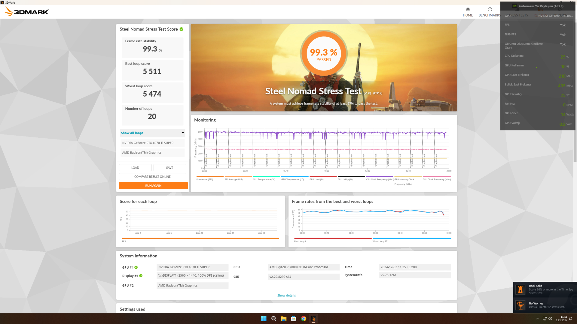 Çok fazla test yaptım fakat M.2 SSD'den Samsung 990Pro şüphelendim genel olarak testleri bırakacağım.