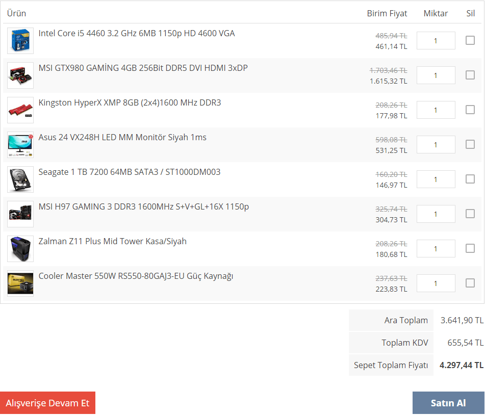 Galiba OC yapmayacaksınız o yüzden anakartı H97 seçtim. İşlemci OC yapılamayacağı için soğutucuya gerek görmedim. Şimdiden hayırlı olsun.