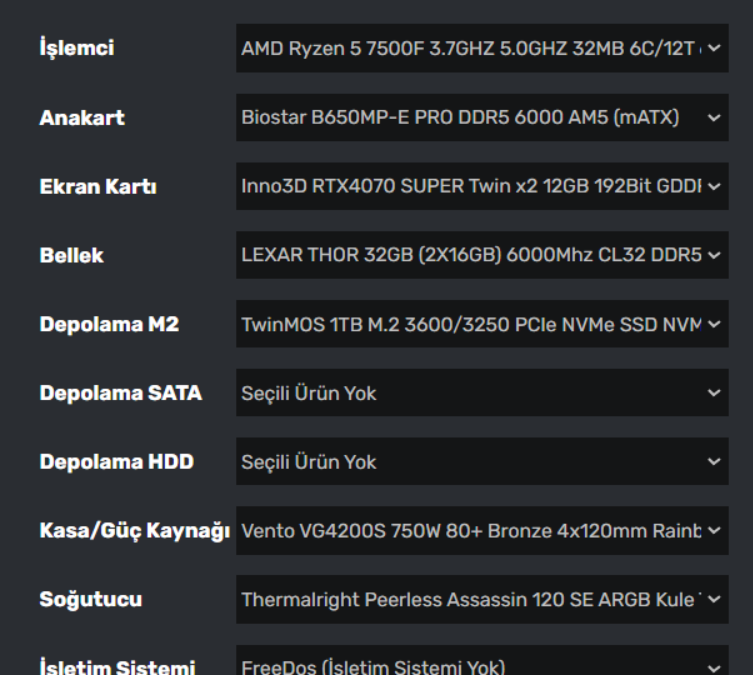 Ekran kartı olarak rx modellerini tercih etmiyorum.Anakartı B650 SSD'yi 1 TB RAM'ı 32 yaparak alabilirsiniz.