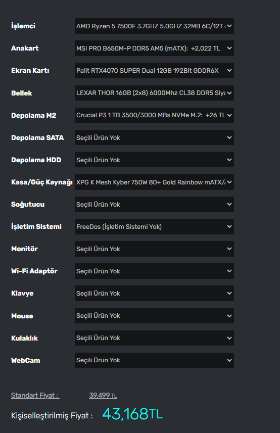 Kendisi özelleştirsin dostum. Ben anakart önerdim sadece.