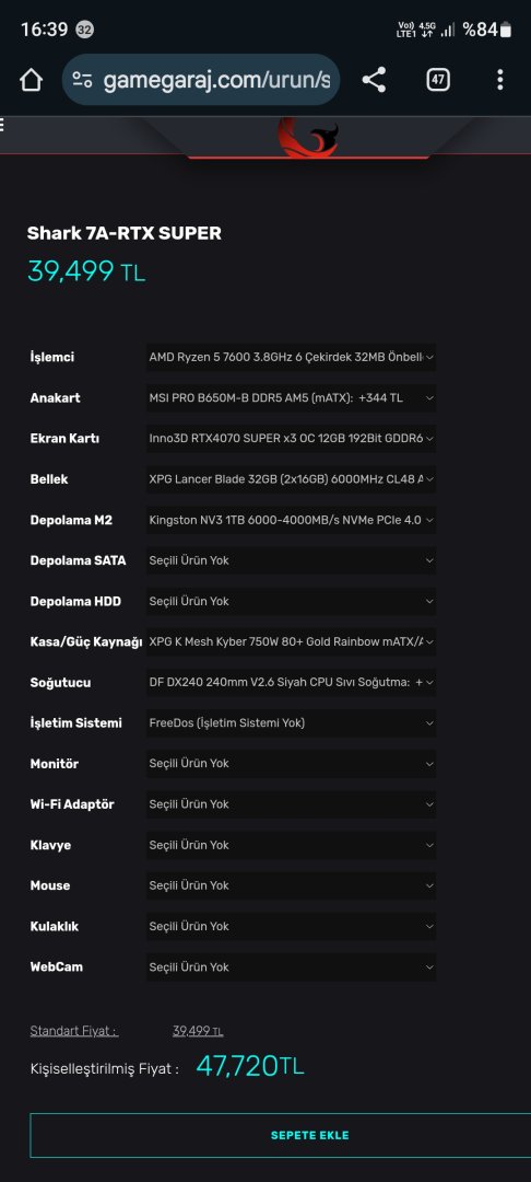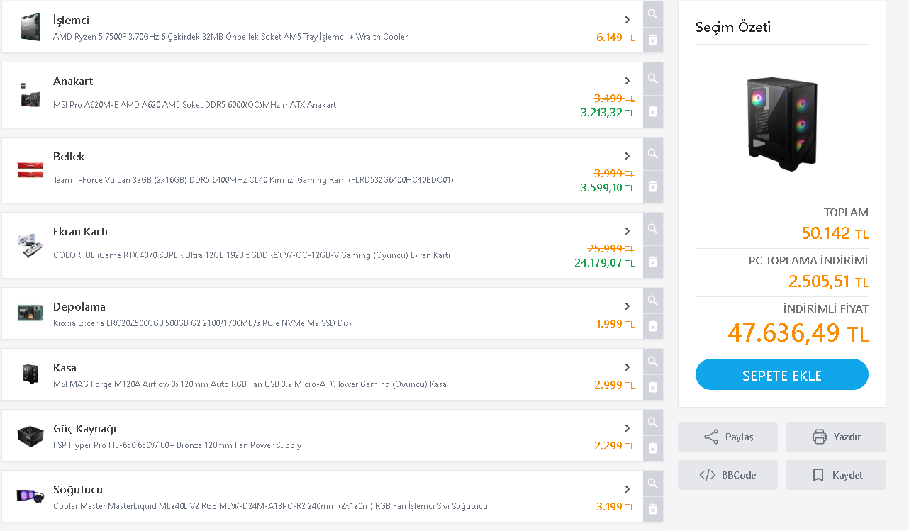 Arkadaşlar Samsung Odyssey G6 aldım 2K 240 Hz 1ms ve bir sistem almak istiyorum. Bütçem maksimum 45k ve istediğim özellikler RTX4070 R5 7500F 32 GB RAM 1TB hızlı bir SSD iyi bir PSU ve sıvı soğutma. Bu özelliklerde bir PC toplama şansım var mı acaba?