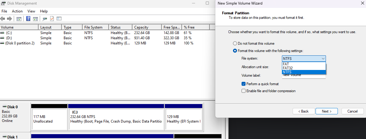 Hocam sadece nfts ve exfat gözüküyor biçimlendirme kısmındaVeri kaybetmeden nasıl yapabilirsiniz bir bilgim yok. Verileri tamamen silerek değiştirmenin yolu ise, disk Management'e girip, biçim değiştirmesini istediğiniz diske sağ tıklayıp, "delete volume" seçeneğini seçin. Bu işlem diskinizi temizler. Daha sonra "ayrılmamış alan" olarak gözükecektir. Tekrar sağ tıklayıp "yeni basit birim" seçeneğini seçin. Disk kurulumu esnasında, diskin hangi biçimde olacağına karar verebilirsiniz.