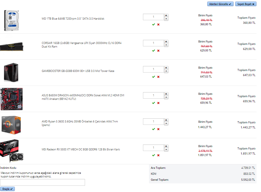 [/QUOTE Benim attığım sistemin Anakartı ve ekran kartı daha iyi içine HDD katınca 400TL fapan fark oluyor kesinlikle benim attığım daha iyi.