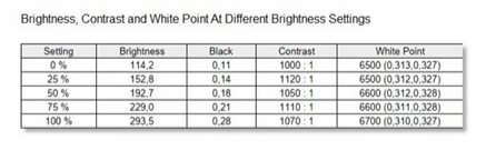 295 Nit tabi günümüze göre zayıf, 1070-1100 civarı takılan kontrastta. Genede en alt limiti karşılıyor. Beyaz tonu ise 6700-6500 ile tam isabet olmuş.