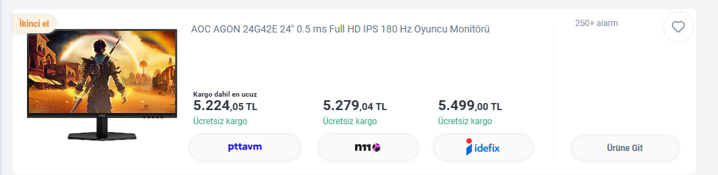 ben baktım n11 ve pttavmde var aoc24G42e gelse de alsak keşke yoksa 244F alıp geçeceğim yoksa, beklemişken azıcık daha bekleyeyim diyorum.