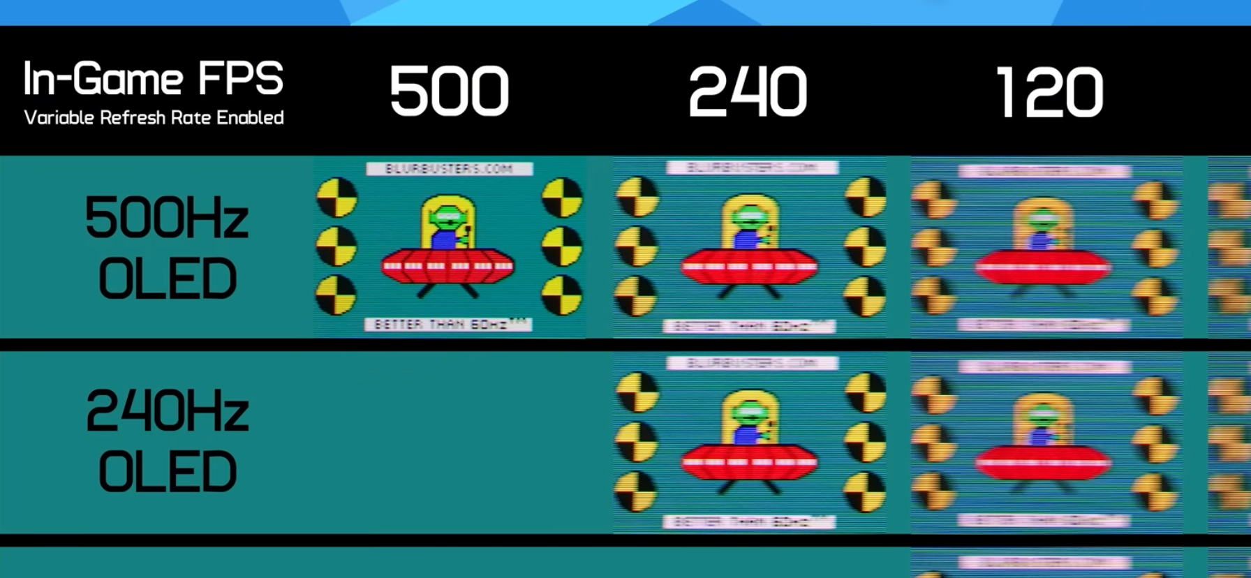 Şöyle şeylere bakıpta inanmayın. Hz değeri yükseldikçe hareket netliği de artar. 360Hz OLED bile hareket halinde bulanık gözüküyor. 500Hz ile bayağı bir azaldı fakat hala bulanık. PG248qp gibi IPS monitörler bile 500Hz OLED'den net gösteriyor. Bunun sebebi backlight strobing teknolojisi.