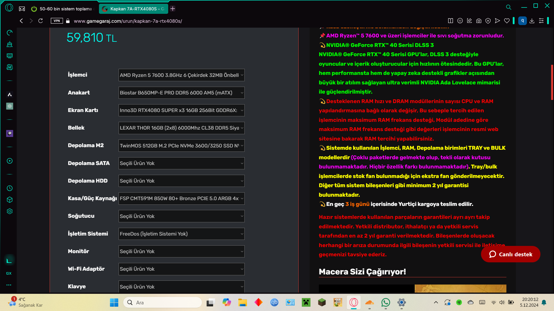 7900 XT ile Toplam:59,314.61TL