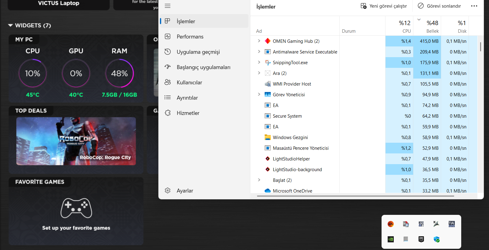Hiçbir uygulama açık değil arka planda olan uygulamalar görüldüğü gibi. Sanırım 3-4 GB'ı Windows 11'e gidiyor zaten ama bana yine de fazla geldi. Bu kadar kullanması normal mi?
