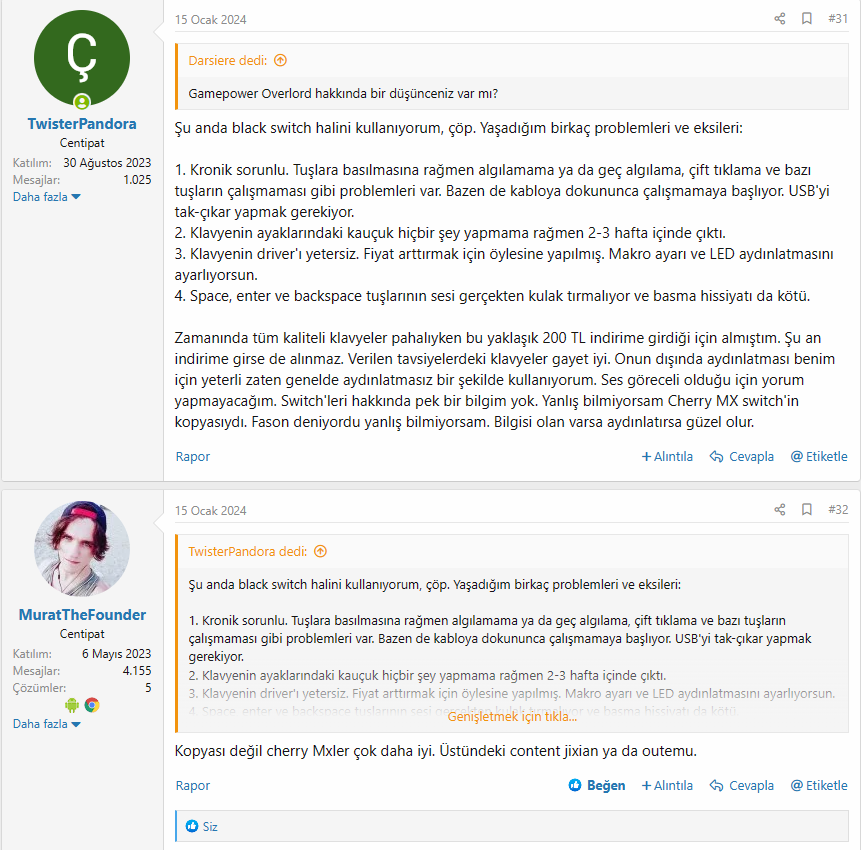 EDİT: Aklıma şu an kullandığım Gamepower klavye hakkındaki görüşlerimi belirttiğim konu geldi, onun da görselini bırakayım. Ayrıca bu konudan 1 hafta sonra kablosu da algılamamaya başladı. Şu anda yeni kablo aldım.