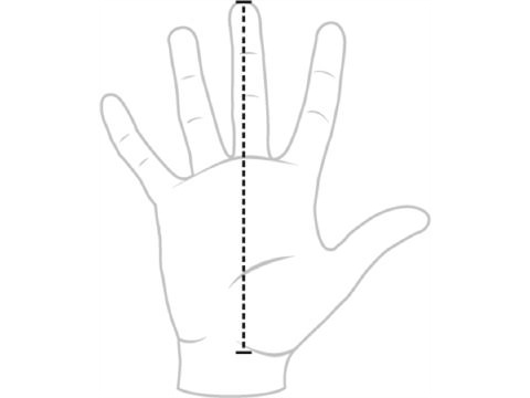 Bir cetvel veya mezura ile orta parmağınızdan bilek çizgisine kadar elinizi ölçer misiniz lütfen şu şekilde.