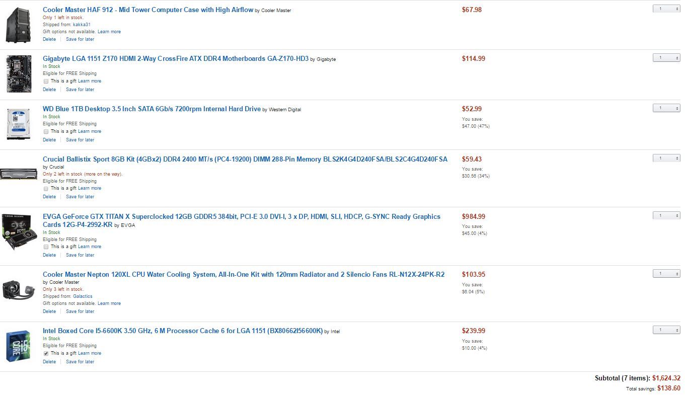Amerikaya work and travel ile gitmiş arkadaşıma ekran kartı ve işlemciyi getirmesini rica edicem. Titan X hiç aklımda yoktu ama kanıma girmiş bulundunuz şu an :)