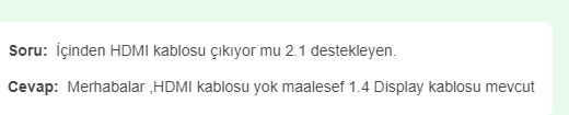 2-HDMI 2.1 var bu iyi bir avantaj ama monitörün HDMI sürümü de en kötü 2.0 olmalı. 2.0 ile 240Hz alabiliyorsun. Aşağısı işe yaramaz. HDMI 2.1 girişli monitör ile G-Sync'te açılıyor vrr desteği var çünkü. Fakat baktıklarımız HDMI 2.0 desteklemiyor. Hangi monitöre bakmıştık beynim çorba oldu.
