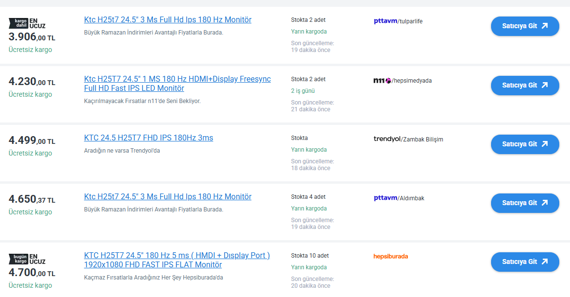 Aralarında yaklaşık 2000TL var. 244F de iyi bütçenizi zorlamak istemezseniz diye bunu önerdim. Ayrıca beğenmedim atan arkadaş monitörün neresi kötü de beğenmediniz acaba varsa daha iyi öneriniz paylaşın öyle emoji bırakın.KTC fiyat ve parlaklık konusunda canavar vallahi renkleri de iyi ama 244F'in renkleri daha iyi değil midir hocam? H25T7 4.700 TL olmuş Hepsiburada'da.