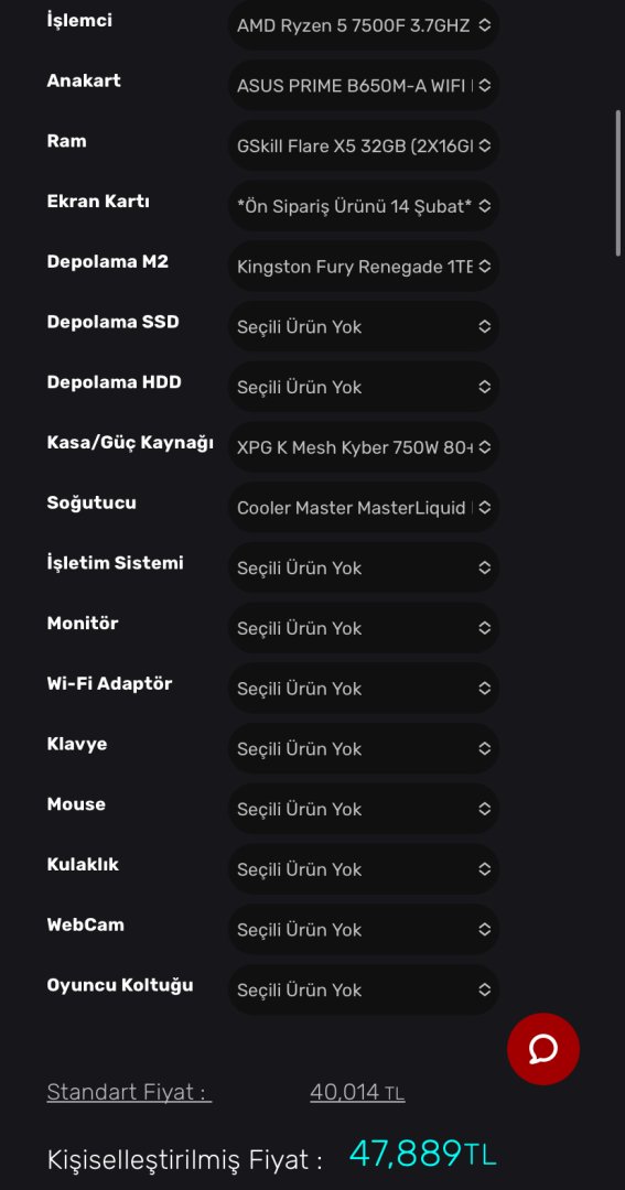 creative11 dedi: Ekran kartı olarak neyi sectiniz. Buna benzer düşünuyorum bende sadece ekran kartına göre işlemci modelini değiştireceğim. Genişletmek için tıkla... 4070 Super.