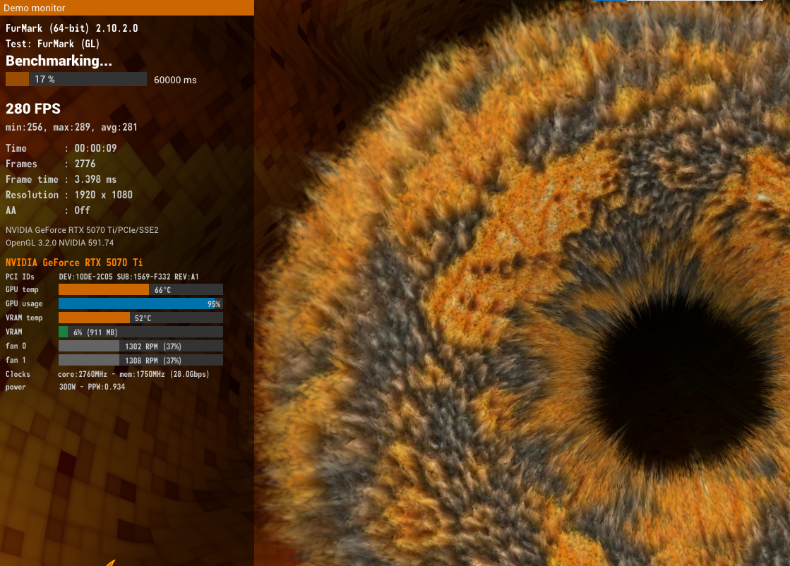 Palit gamingpro 5070 Ti aldım kardeşimin evinde sıfır ve FurMark testi 280 FPS geldi kardeşimin PC'si 650 watt Thermaltake kötü bir PSU ve işlemcisiyse i5 9400F sizce normal mi bu FPS degeri?