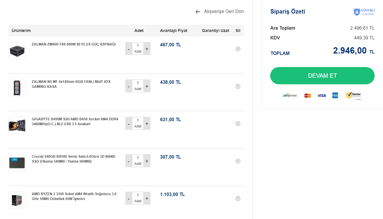 Herkese iyi günler. Arkadaşım bir sistem toplayacak. Ben de bildiğim kadarıyla ona bir sistem yaptım. Vatan olması zorunlu maalesef (Kredi kartı makiyesi sebebiyle). Bütçe 5400TL, şimdiden teşekkür ederim.