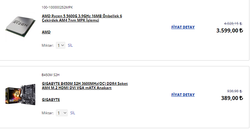 RAM'ler yaklaşık 1000 TL desek şu an toplam 4988 TL.