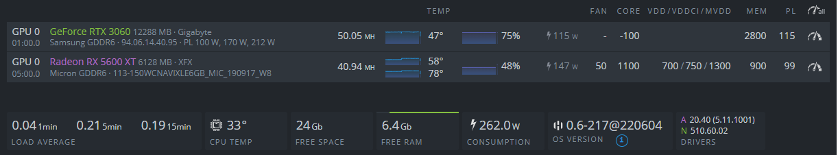 AMD kartlarda PL sınırını Hiveos'ta düzgün çalıştırabilen yok gibi bir olay. TeamRedMiner 0.10 sürümüne geçip RR modu ile düşük enerjide seri çalıştırabilirsiniz. Mevcut kullandığım ayarları paylaşıyorum. Deneyebilirsiniz.