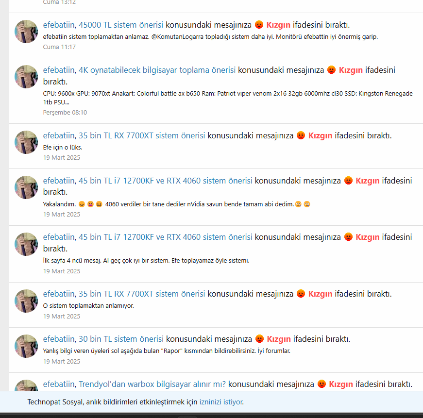 9070 öneriyor ki kimse Nvidia almasın. Nvidia ekran kartı alacak.Bende çok ineceğini düşünmüyorum. Çok fazla talep var. Herkes 9070 serisi stokları bekliyor. Birazda @efebatiin hocamın parmağı var. Herkese 9070, 9070xt öneriyor.