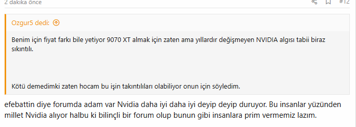 9070 öneriyor ki kimse NVIDIA almasın. NVIDIA ekran kartı alacak.