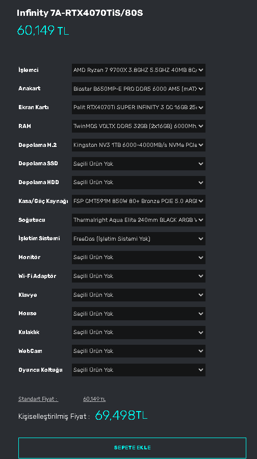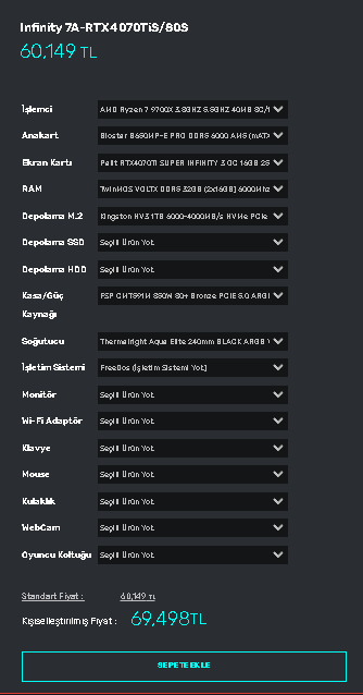 Merhaba arkadaşlar, başlıkta da belirttiğim gibi 60-70k bandında taksitle alabileceğim bir sistem arayışındayım. Açıkçası bu işlerden pek anlamadığım için sizlere danışmak istedim. GameGaraj'ın sisteminde taksitle alınabilecek birkaç sistem bulunuyor, sizce bu sistem bu fiyata alınır mı? Alınacaksa ne tür değişiklik yapılabilir?