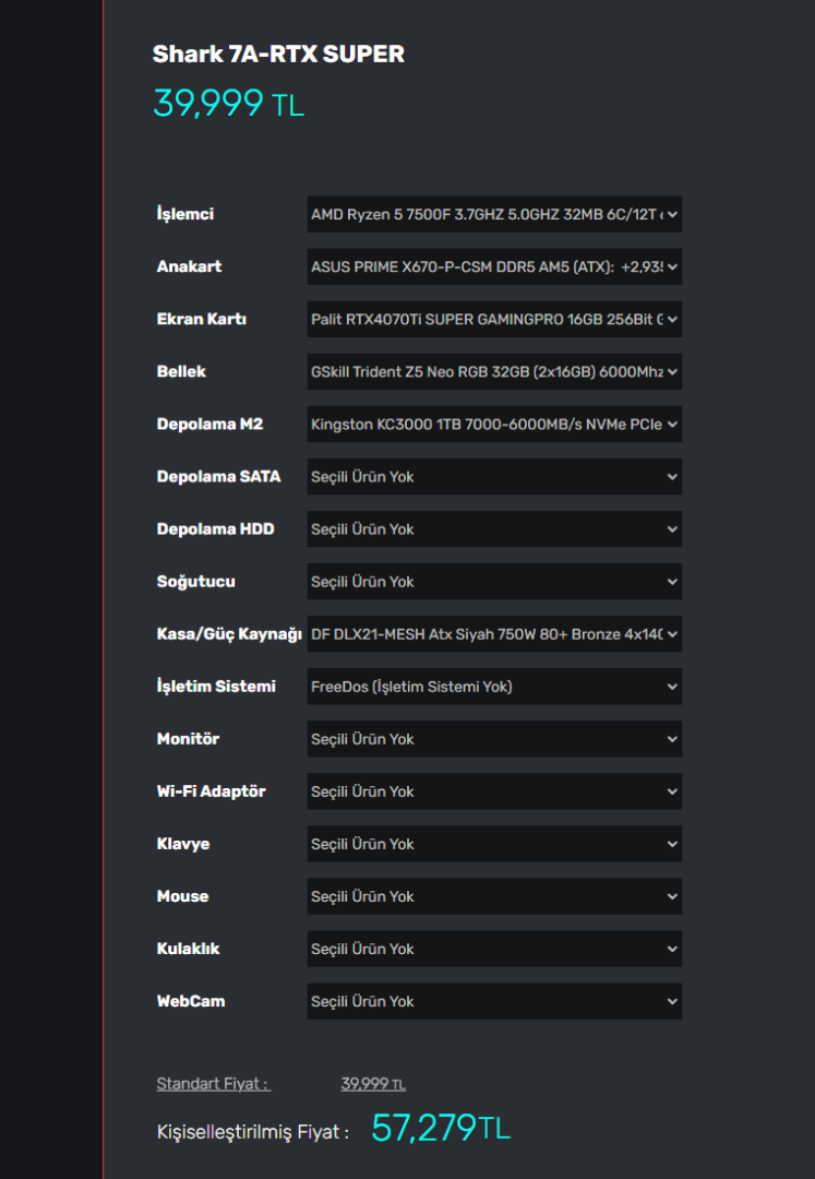 Sistemi attığım şekilde yap. Anakartı RAM'i ve ekran kartı modelini yükselttim.