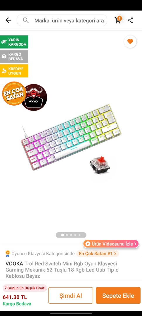 Leaven K620 Trendyol sitesinde 700 TL civarlarında olur mu? İyi bir klavye ama. PBT tuşlar, Rainbow ışıklar, hot swap Switch'ler, tüm tuşlara aynı anda basma gibi şeyler var. İncelememi okuyabilirsiniz.