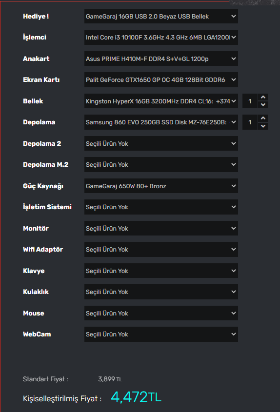 6000 TL monitörlü sistem önerisi.