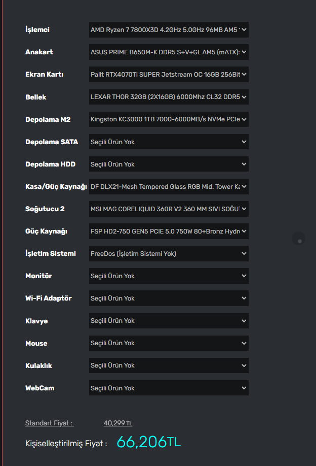 Alınır alınmasına ama size işlemci mi lazım ekran kartı mı? 67k'ya 4080S'li sistem var ama 7500F'li.Lexar RAM'ler alınır mı?