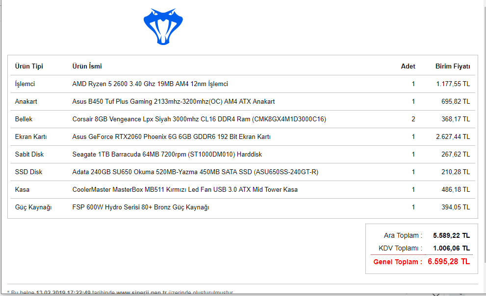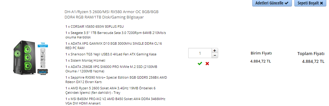 NOT: Sistemde yer alan Asus B450M-K sadece fiyat gözükmesi için koyulmuştur. MSI B450M Gaming Plus ürününün stokları bittiği için ona yakın fiyat olması için konmuştur. Normalde MSI B450M Gaming Plus kullanılacaktır.