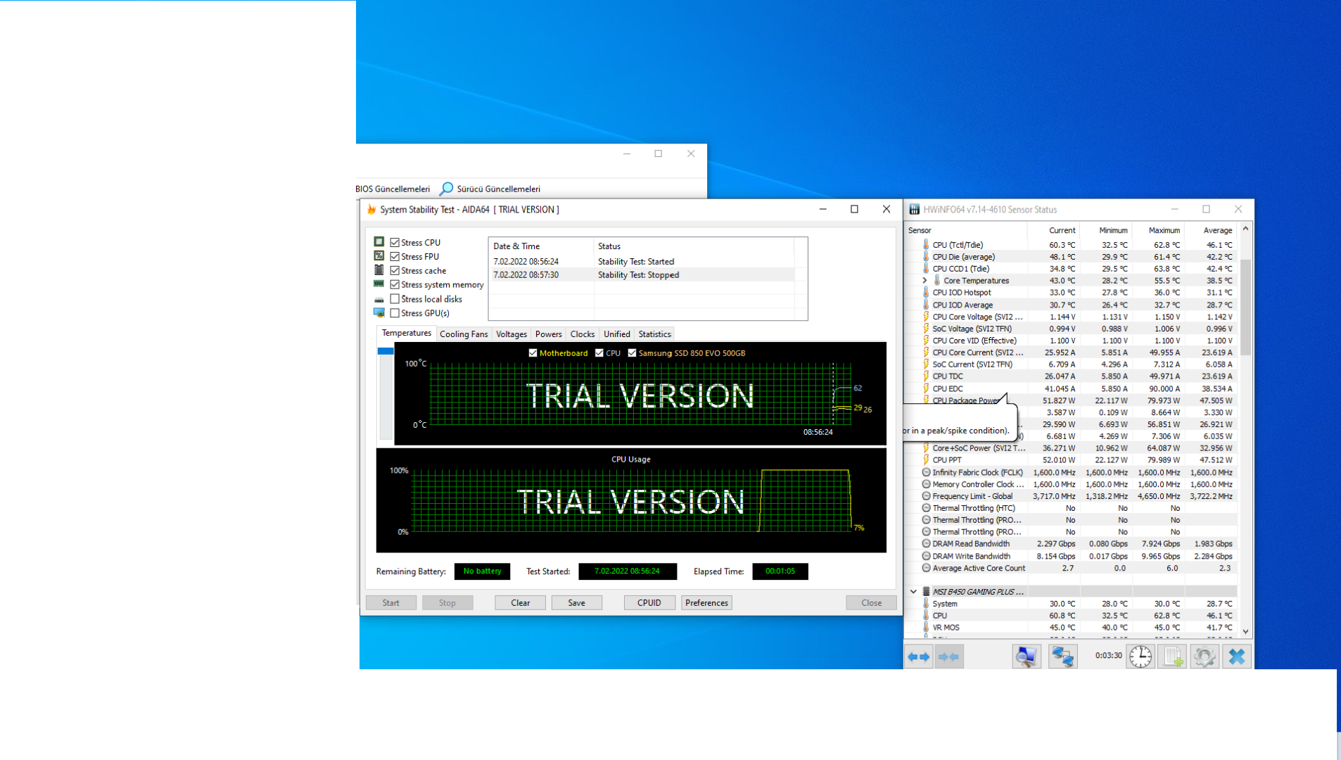 MSI Afterburner'da bütün değerlerim normal. Ekran kartı en fazla 55-60 derece, ekran kartı kullanımı %98. Ayarlarıma göre değişiyor.