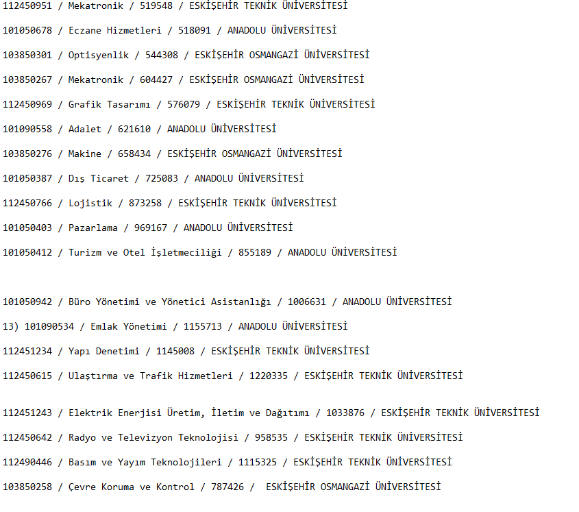 İlk 11 tercih istediğim bölümler, bunlardan ilk 7'si benim sıralamamdan iyi bölümler. Kalan 4 tanesi ise sıralamamın altında kalan bölümler.