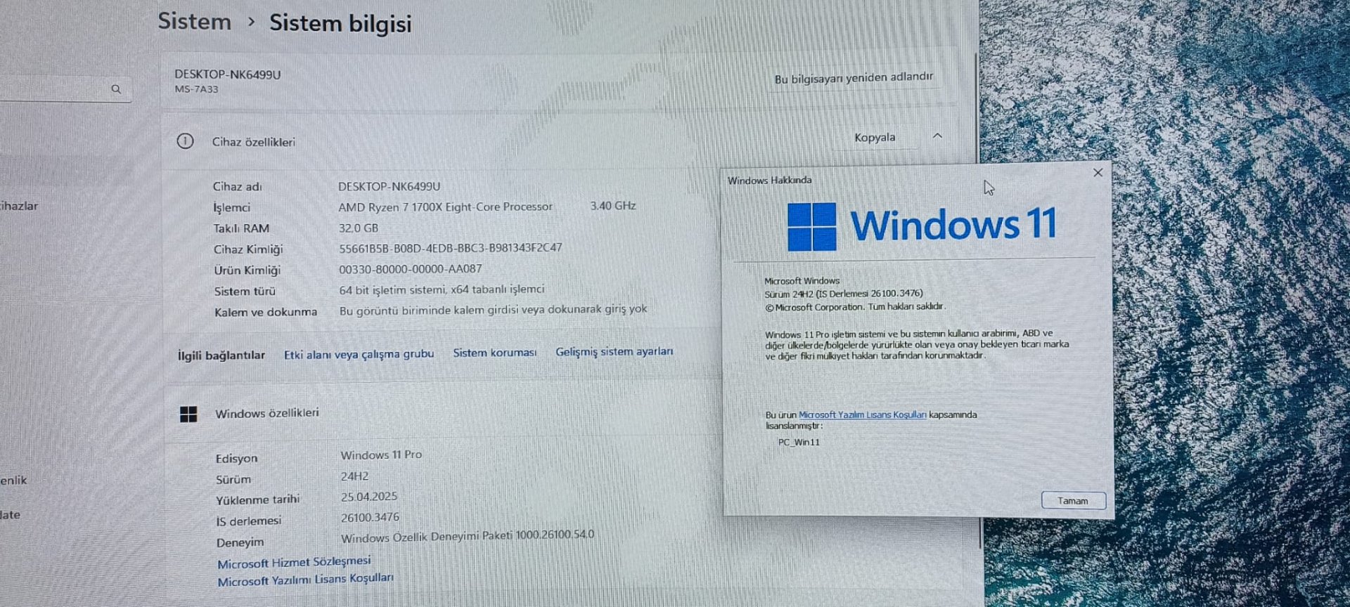 Windows 11 24H2 Kurulum Görüntülerini Ek'te paylaşıyorum.