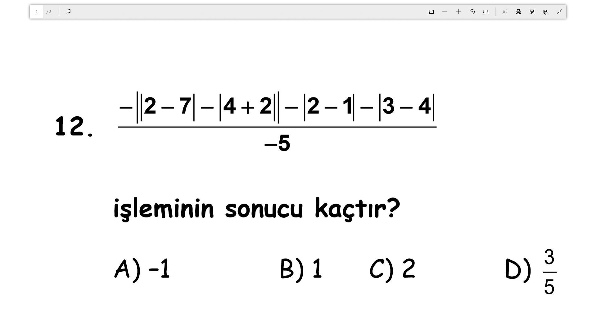 İlk soruyu -3/5 olarak buldum ama yeniden yapmayı deneyeceğim. İkinci soruyu -1, üçüncü soruyu da 2b-2a olarak buldum.
