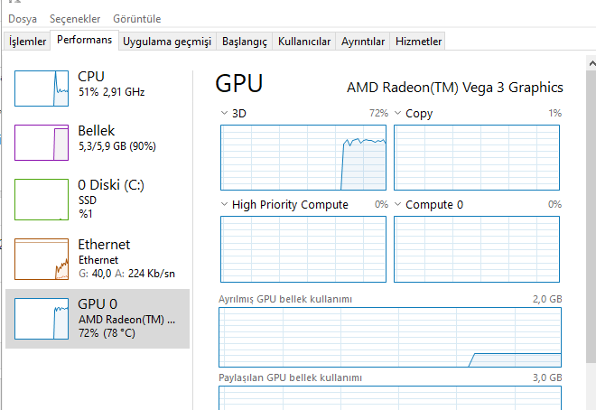 8 GB RAM'im var. Windows 10 kullanıyorum ve APU sistem 2 GB RAM'i kendisine alıyor. Bana 6 GB kalması gereken RAM neden 2.5 GB kalıyor?