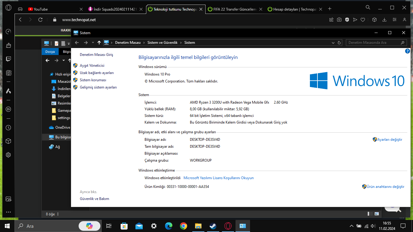 8 GB RAM, kullanılabilir olarak 5,92 GB gözüküyor