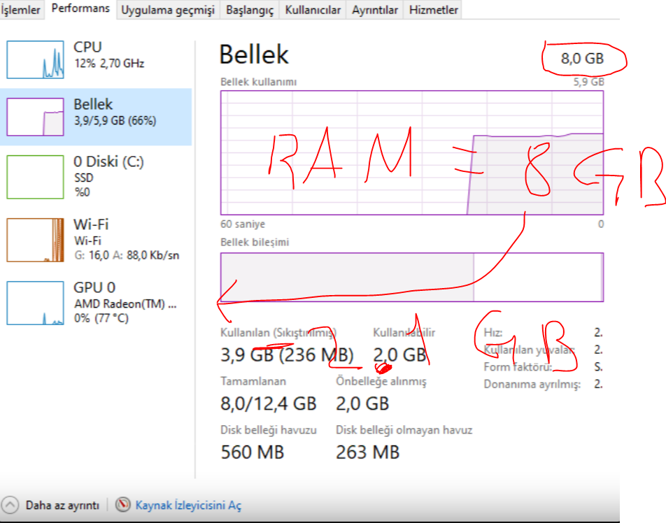 Çözüldü 8 GB RAM sistemde kullanılabilir RAM 5.95GB